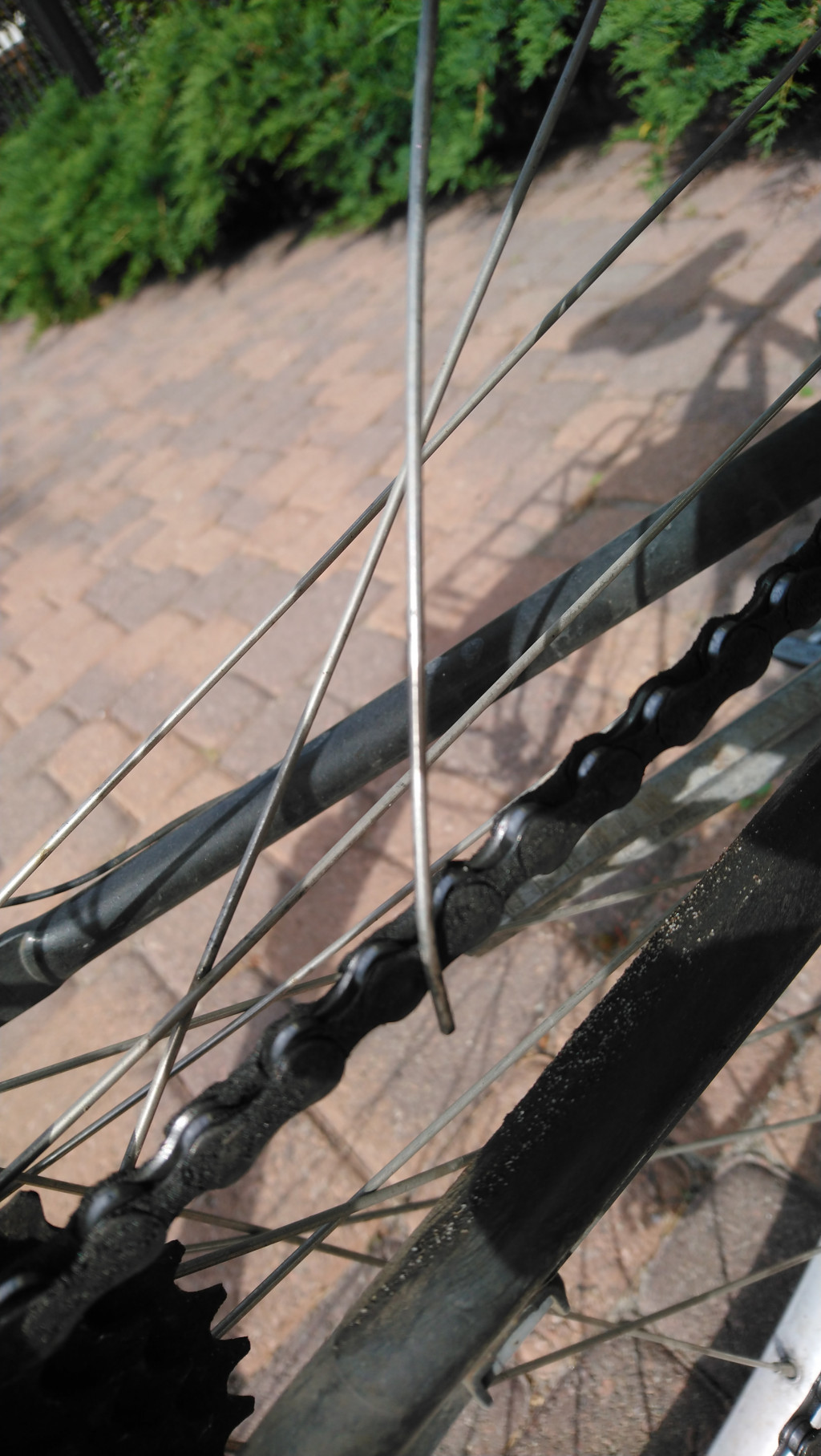 Der Verdacht hat sich bei Tageslicht bestätigt: Eine Speiche vom Hinterrad ist gebrochen. Einen Fahrradladen gibt es in Leba nicht. Rower Leba (Fahrrad Leba) ist der größte Verleih, repariert aber nichts. Ich beschloss deshalb, mit einer Speiche weniger weiterzufahren und bei der Streckenplanung mehr Detailarbeit zu leisten, d. h. möglichst nur asphaltierte Wege zu wählen.