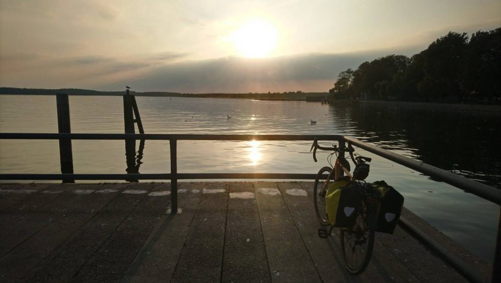HavelbergSandige Wege gab es zum Glück nur selten. Das Radwegenetz ist gut ausgebaut.Kilometerlange Straßen durch dichte Wälder, wenig Autoverkehr, Alleen und Seen.KyritzPfarrkirche St. Marien in KyritzAutofahrer in Kyritz mit einer seltenen Botschaft.Das Ordnungsamt hat zwischen Königsberg und Christdorf Bäume wegen des Eichenprozessionsspinners markiert und Warnschilder aufgestellt.Maisernte am Obersee bei BorkWittstock an der DosseHafen in Waren an der MüritzSonnenuntergang an der Müritz. Zeit, eine Schlafstätte aufzusuchen.