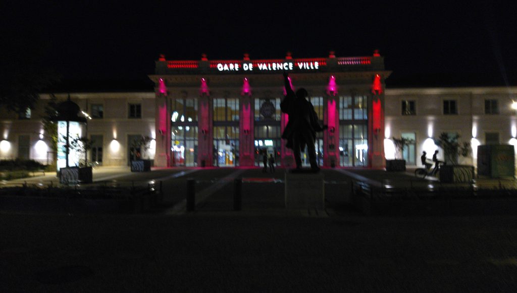 Nach etlichen Stunden kam ich gegen 18 Uhr wieder in eine Ortschaft mit Läden: Bourg-de-Péage. Ich war bei den Hinweisschildern etwas irritiert und fragte mich, ob ich jetzt mit dem Rad auch Péage zahlen muss… Ich hatte keine Mittagspause gemacht, nur einen Müsli-Riegel unterwegs gegessen. Ich war hungrig, verproviantierte mich und aß schnell ein Brötchen. Die restlichen 20 Kilometer fuhr ich mit Rückenwind und immer sanft bergab nach Valence. Die Dame im Hotel bot mir ein größeres Bett ohne Aufpreis (57,90 Euro), das Rad konnte ich in der Tiefgarage einschließen, aber das mit der Frühstücksbox habe ich nicht verstanden (sie Mundschutz und Schnellsprecherin – ich Mundschutz und Leisesprecher). Ich wollte immer das Formular, dass sie mir gab, ausfüllen. Am Ende hab ich die Box direkt mitbekommen. Das Zimmer ist herrlich groß und hat auch einen Kühlschrank. So bin ich für morgen früh gleich ausgerüstet. Ich will nach Avignon. Das ist noch ein Stück weiter als heute, dafür aber alles flach.
