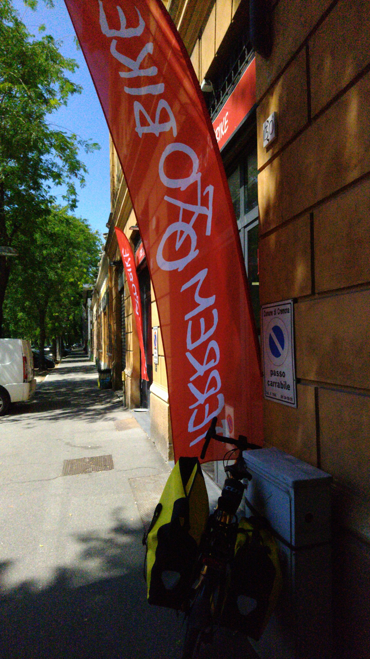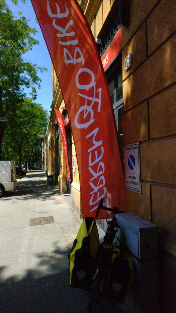 Nach 675 Kilometern, auf halber Strecke nach Rom, habe ich einen Ruhetag eingelegt. Cremona schien mir dafür ganz gut zu sein. Zum einen ist die Stadt groß genug, dass ich Fahrradzubehör einkaufen kann. Zum anderen eignet sich die Altstadt zum Flanieren ganz hervorragend.