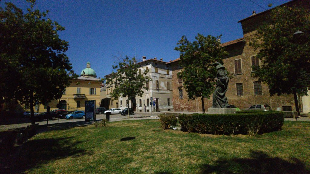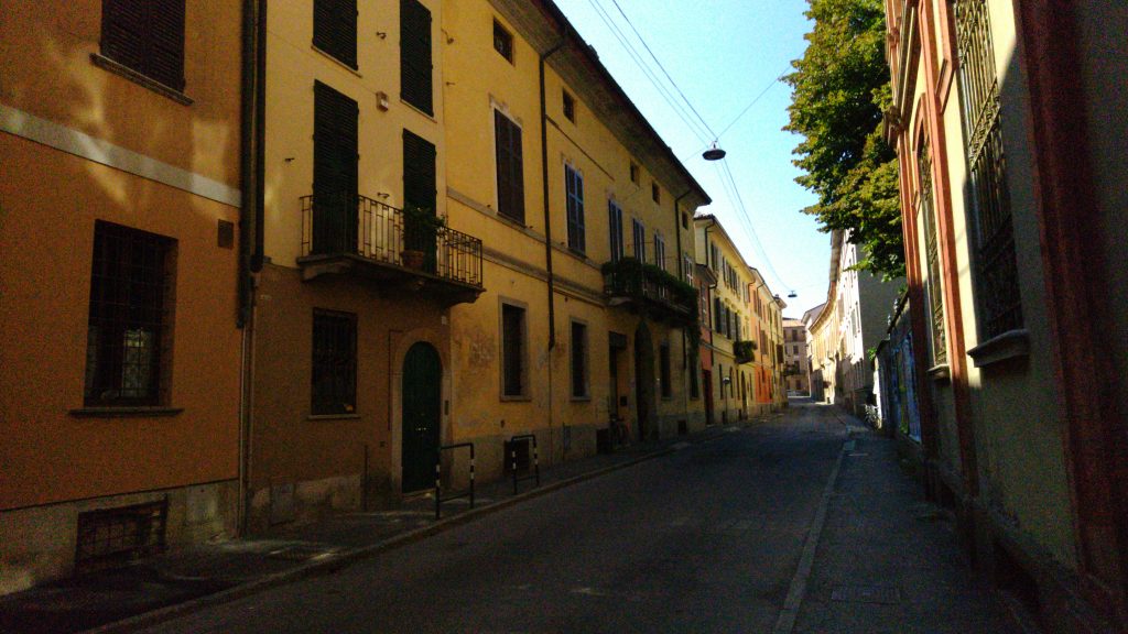 Bei den Besorgungen erkundete ich die Altstadt mit ihren vielen Gassen, dem Museo del Violino, den vielen Stradivari-Denkmälern und Geigengeschäften und machte auf der Piazza Lodi Mittagspause. Dann bezog ich Quartier, um Siesta zu halten. Mein Hotel befindet sich in der Nähe des Doms, an der Piazza della Pace. Nun bleibt für heute noch Zeit, etwas Tourplanung zu machen, Wetterberichte zu lesen und die Faszien auf den Tag morgen vorzubereiten.