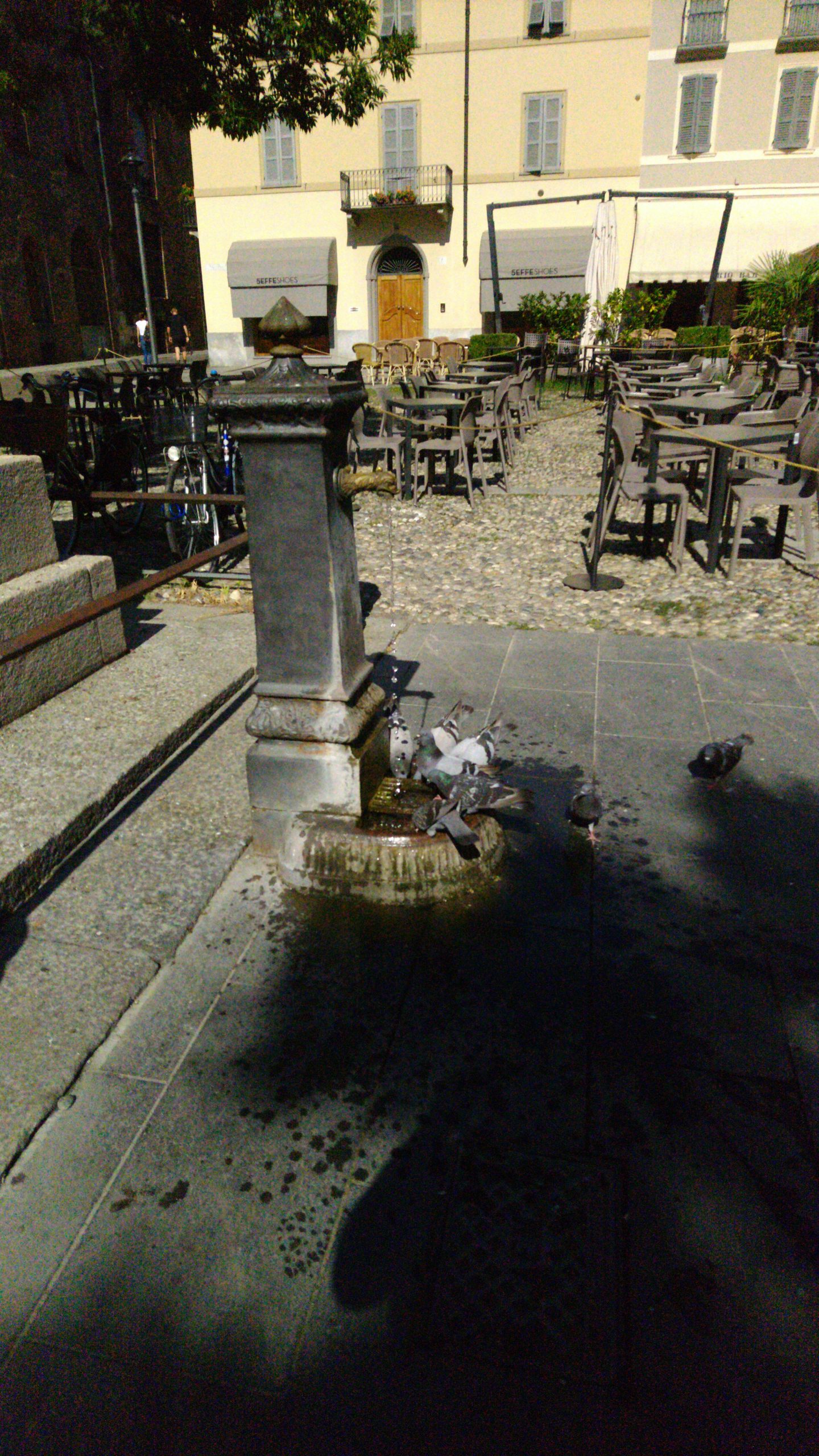 Ich habe noch nie so durstige Tauben gesehen. Am späten Nachmittag hatte es 33 Grad im Schatten. Kein Grund das Bild zu kippen – werde ich WordPress mal sagen.