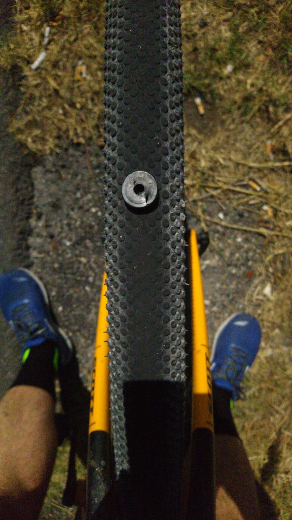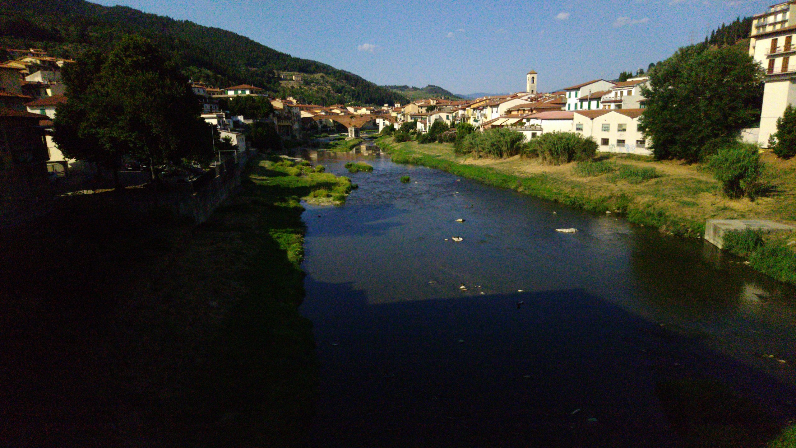 Der dritte Versuch, das Vorderrad zu reparieren, fruchtete. Es war aber auch klar, dass ich bei den noch 100 zu fahrenden Kilometern in die Dunkelheit kommen würde. Darauf war ich vorbereitet mit Licht und Powerbank. Das Navi hat immer noch genug Reserven und verbraucht Dank Flüssigkristallanzeige nicht viel. – In Pontassieve verproviantierte ich mich beim COOP mit Getränken, aß Weintrauben und eine Banane, um für die restliche Strecke genug Kraft zu haben. Weitere Trinkpausen an Bars waren nötig und ich behielt immer einen halben Liter Wasser als Reserve. Ein Viertelmond ging auf, der mir die Strecke in der beginnenden Nacht etwas erleuchtete. Phasenweise war es auf den einsameren Gehöften und im Wald stockdunkel. Hunde bellten mir hinterher. In den Büschen raschelte es und das Getier machte so allerlei Geräusche. Nachts zu fahren ist schon etwas speziell. Heute aber fand ich die nachlassende Hitze angenehm.