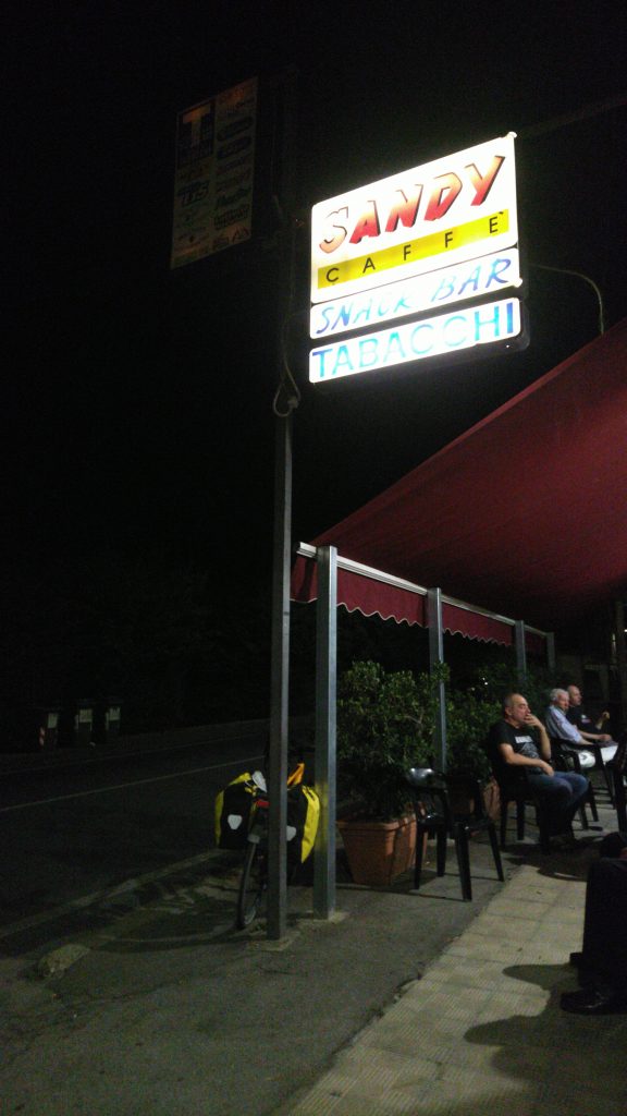 Heute musste ich in Florenz dreimal den Schlauch vom Vorderrad wechseln. Ich kam deshalb erst am Nachmittag wirklich ins Fahren und war halbelf im Hotel in Rigutino, südlich von Arezzo. Ich hatte vorher gefragt, wann der letzte Check-in ist. Antwort: „Kommen Sie, wann Sie wollen.“ So etwas höre ich ja immer gerne.