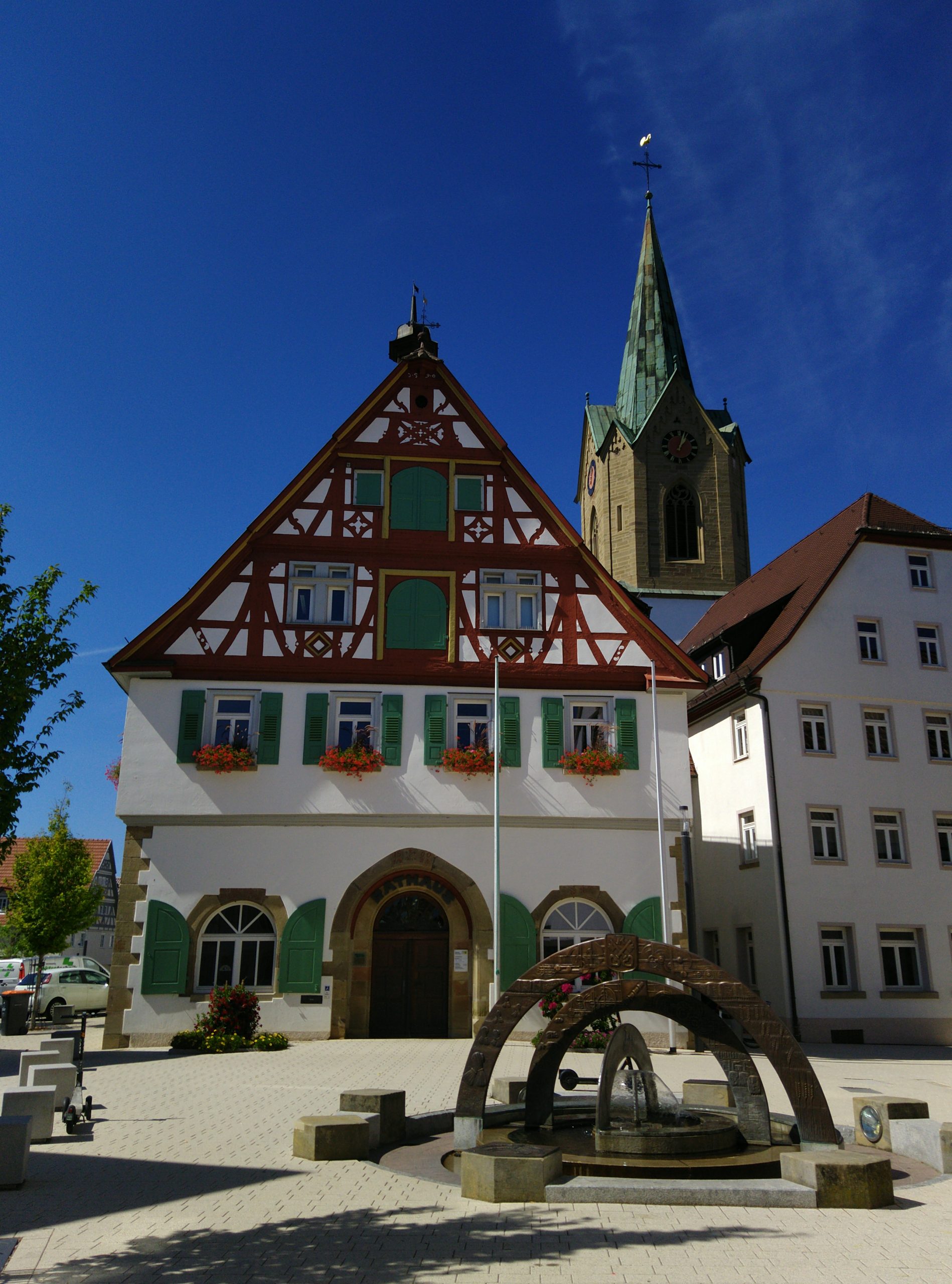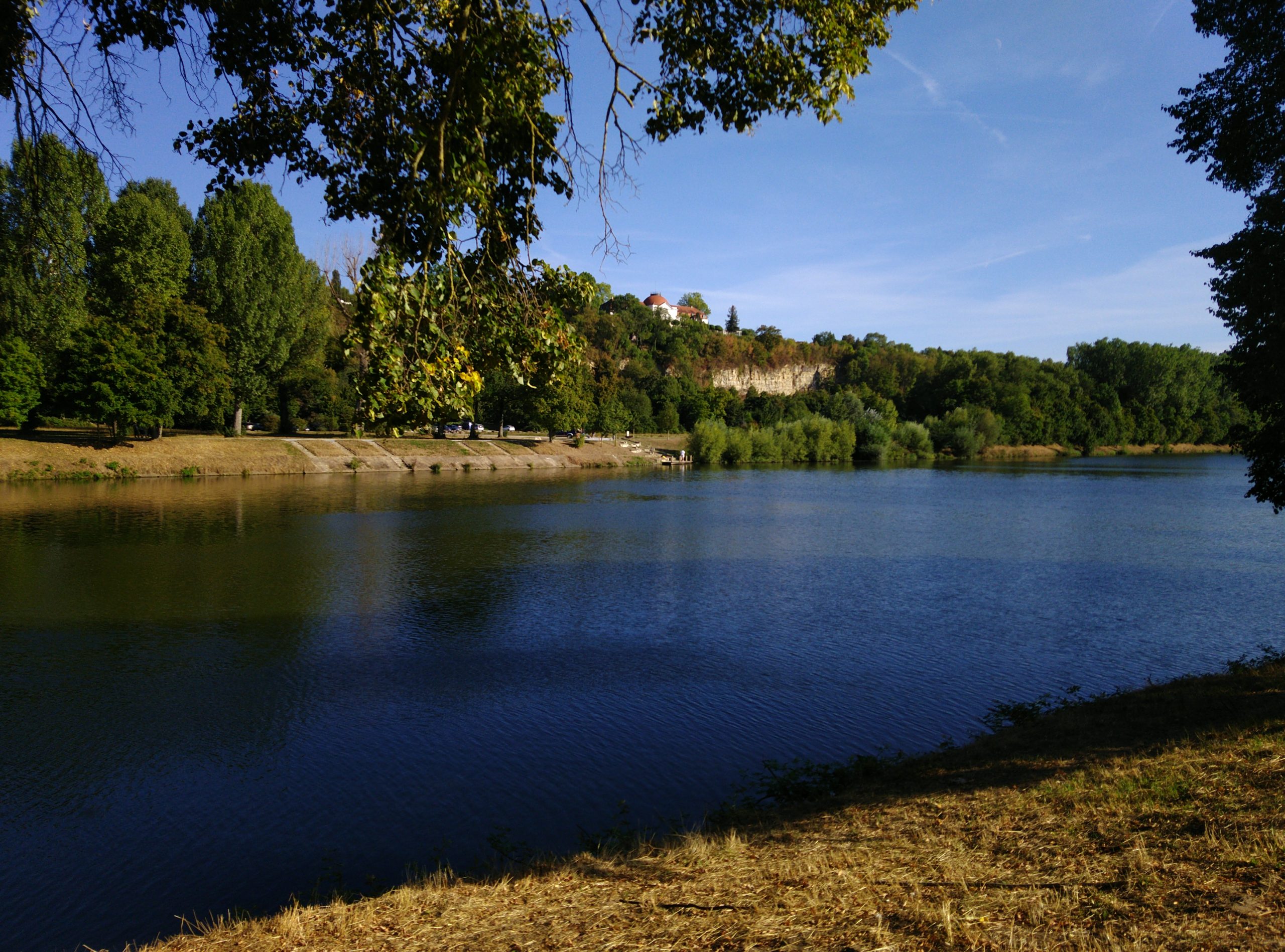 Um das gute Spätsommerwetter noch auszunutzen hatte ich einen Rundkurs geplant: nach Renningen, Mühlacker, Bietigheim, Marbach und am Neckar und den Schlossgarten zurück in den Stuttgarter Westen. Mein Lieblingsweg aus dem Kessel ist die Tour durch Kaltental, nach Vaihingen hoch, an den Patch Barracks und dem höchsten Berg Stuttgarts, die Bernhartshöhe (540 Meter), vorbei und über eine Autobahnbrücke in den Sindelfinger Wald. An einer Bank im Wald stellte ich die Schuhe neu ein: Ich hatte sie zu fest geschnürt, vor allem vorne schliefen mir die Füße vom Ballen ab in die Spitze leicht ein und der Schuh drückte. Das sollte sich dann während der Tour geben. Insgesamt sitzt der Fuß ja immer steif verbunden mit der Klickpedale im Schuh. Ich rechnete schon damit, in den Pausen Fußgymnastik machen zu müssen, aber das war nicht nötig. Es hat sich eine gewisse Fahrökonomie ergeben, bei der ich an Kreuzungen und sonstigen notwendigen Haltepunkten nur den rechten Fuß mit der Drehbewegung nach einen ausklinke, den linken aber in der Pedale lasse, um schneller wieder in den Tritt zu kommen. Manchmal geht der rechte Schuh auch blind wieder in die Pedale, ohne dass ich schauen muss, ob ich die Öffnung richtig erwischt habe. Denn die klappt wegen der Gewichtsverteilung immer nach unten weg.