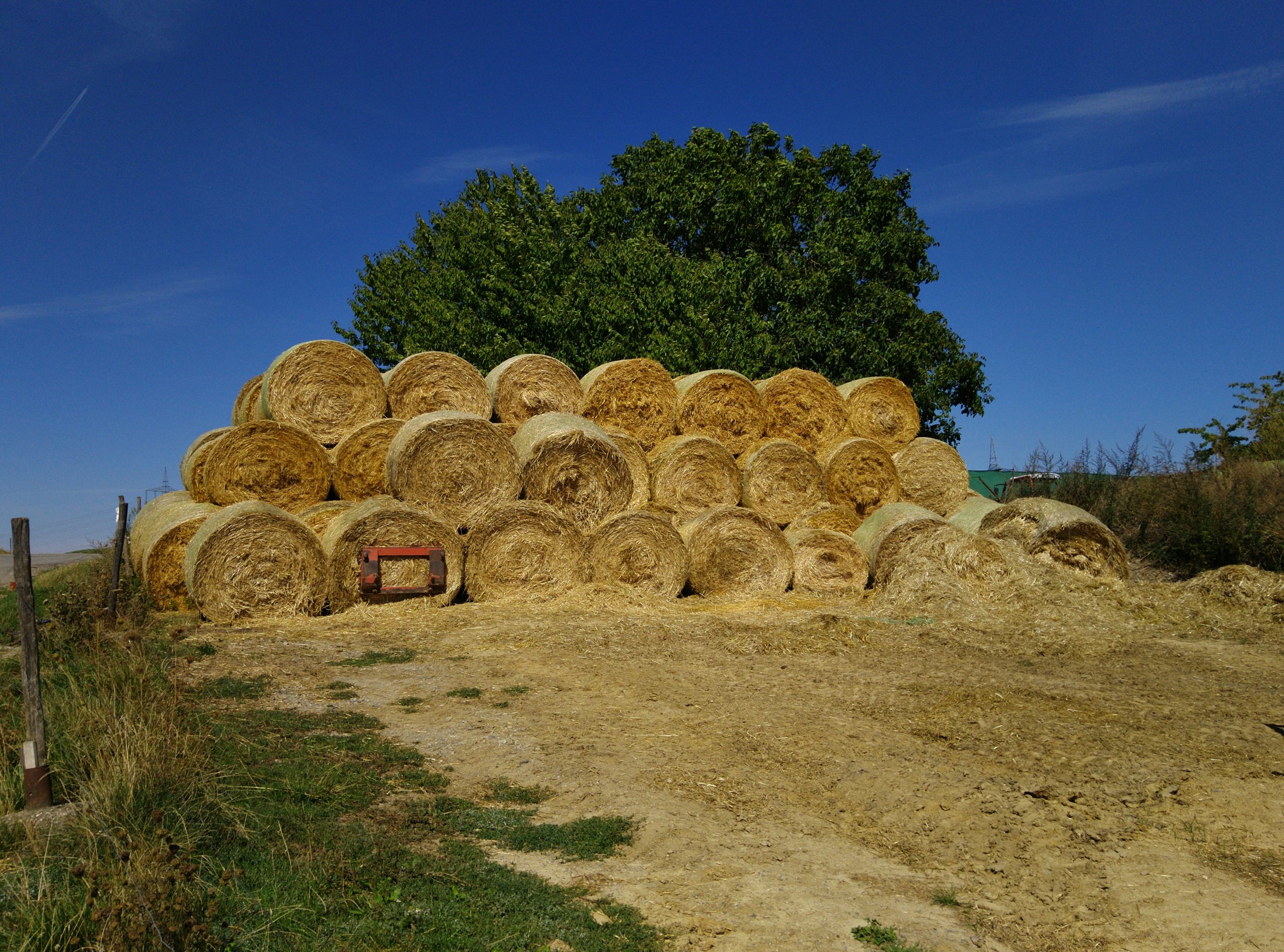 Ich fotografiere ja immer zu viel auf den Radtouren. Deshalb bin ich allein immer am Trödeln. Heute fand ich das Licht und die Farben aber reizvoll. An einem Stapel mit Strohballen stoppte ich also mal wieder wegen eines Smartphone-Fotos, ließ meinen linken Schuh in der Pedale, weil ich ja gleich weiterfahren wollte. Doch mit dem Antritt war es dann nichts. Ich kippte nach hinten auf die Straße (Falltyp „Käfer“), was aber nicht weiter wild war. Keine Kratzer. Der Fehler war, dass ich aus dem Grünstreifen heraus, noch dazu bergauf, natürlich nicht aus dem Knick gekommen war. Ich achte jetzt immer darauf, auf der Straße zu stehen, sodass es mit der Kraftübertragung auch etwas wird. Jens hatte mir ja Stürze prophezeit. Ich komme jedoch besser klar, als ich dachte. Aber es ist schon richtig: Man muss mit dem Kopf fahren und darf sich nicht allein der schönen Landschaft und sonstigen Gedanken hingeben. So nebenbei hat die Runde heute ja auch trainiert – nach der Faulheit der vergangenen Wochen.
