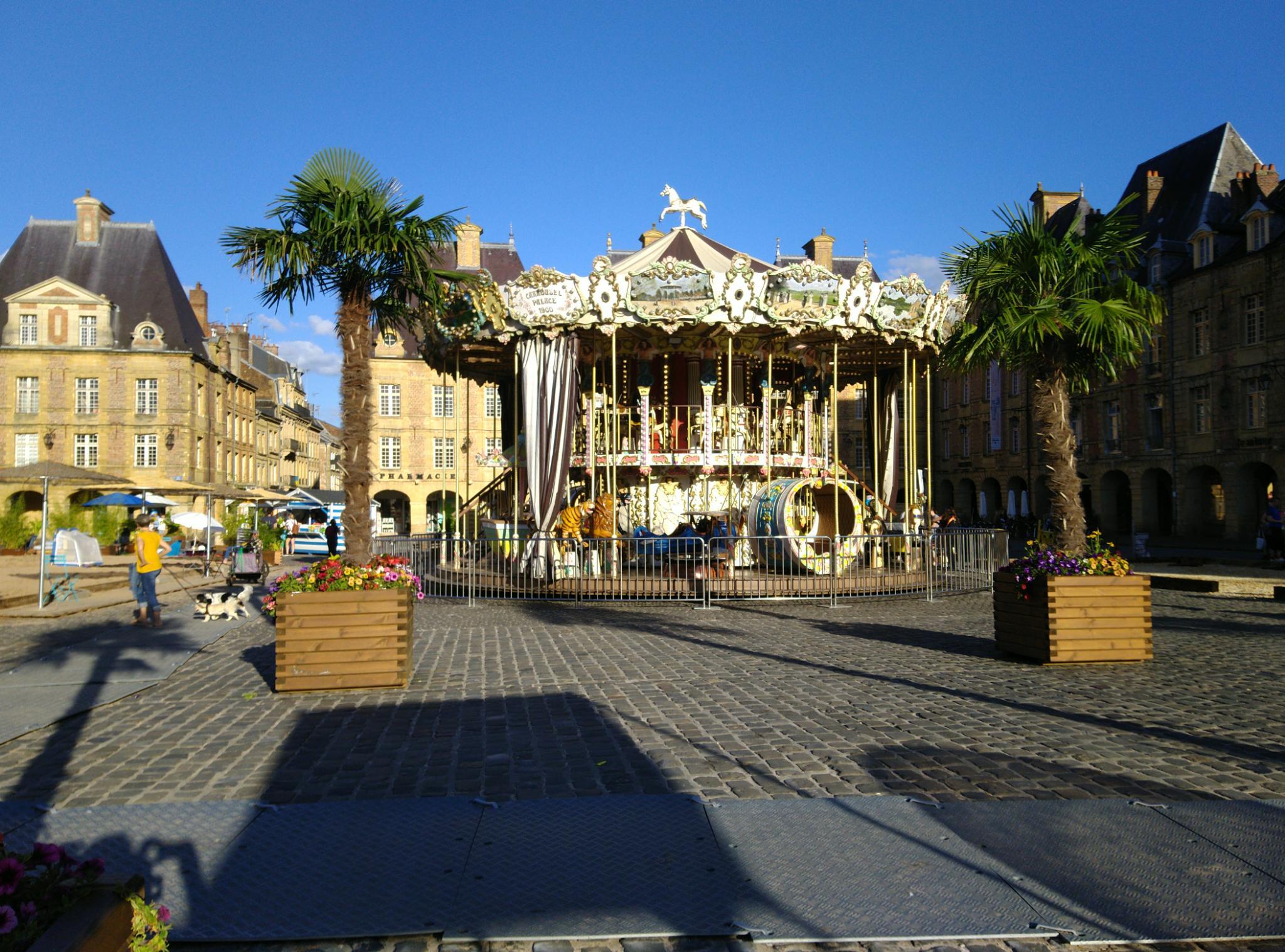 Um halbsechs checken wir im Hotel „Le Pelican“ ein. Ohne größere Planung gehen wir ins Stadtzentrum, um in einem Lokal zu speisen. In Charleville-Mézières sind aber alle Bürgersteige hochgeklappt. Glücklicherweise ist die Place Ducale sehr belebt, ein zentraler Platz, auf dem auch der Wochenmarkt sein zu Hause hat. Allerdings bieten die zahlreichen Bars kein Essen an, oder nur Häppchen. Im Restaurant „La Fabrique“ gibt es Fritten und Burger, was uns aber nicht anspricht. Nach einer weiteren Runde durch die Innenstadt kehren wir doch in der „Fabrik“ ein und entdecken auf der Karte noch andere Speisen.