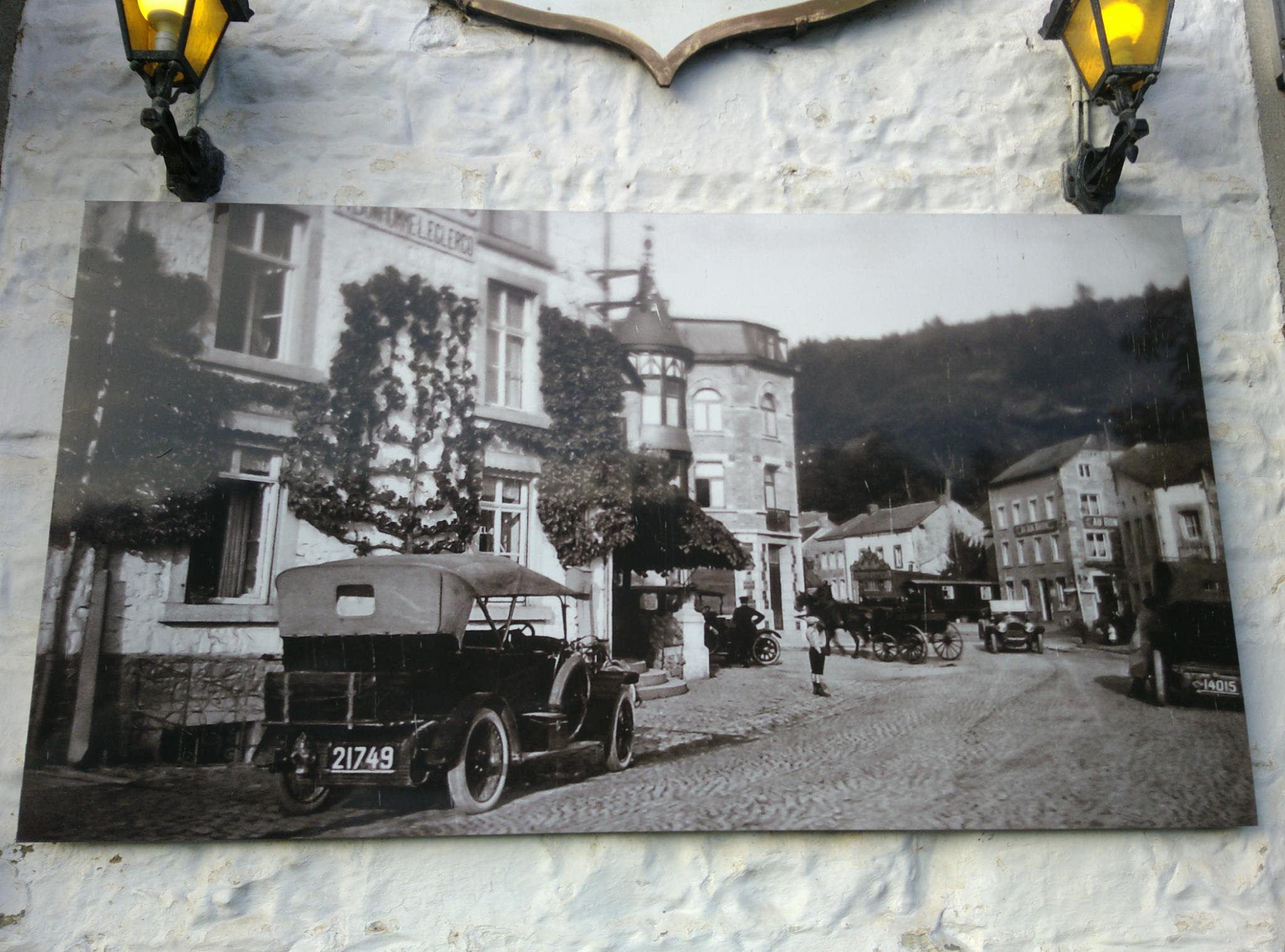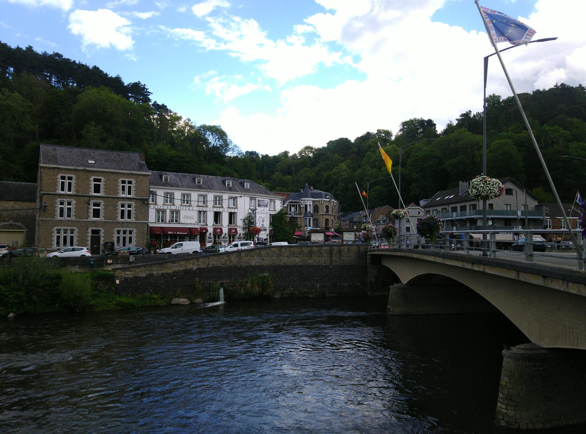 Von Barvaux geht ein Weg an der Ourthe bis zu einem rechten Nebenfluss, dessen Tal wir eigentlich nehmen wollten um zu unserer Unterkunft nach Remouchamps zu fahren. Ich hatte aber keine Lust, das Rad über die Treppenstufen hinauf zu einer Brücke zu schleppen, um auf den Weg auf der anderen Seite zu kommen. Das führte dazu, dass wir doch auf der rechten Seite vom Fluss bliefen und die Abkürzung auf der Straße nach Aywaille nahmen. Das bedeutete Bergarbeit, was uns beiden aber ganz recht war. Beim Radfahren ist die Abwechslung ja das reizvolle. Nach den Anstrengungen des Anstiegs kommt die herrliche Abfahrt. So auch hier. Nach wenigen Kilometern flussaufwärts an der Ambiève entlang erreichten wir unser Tagesziel in Remouchamps: ein besonderes Hotel im Zentrum des Ortes.
