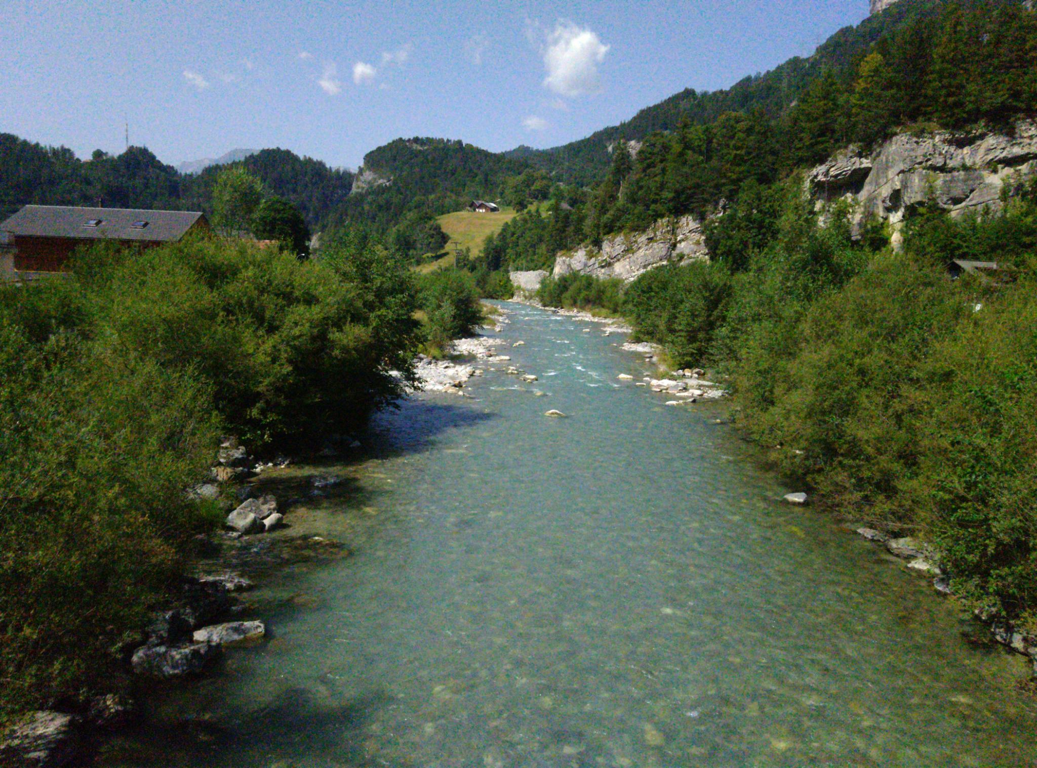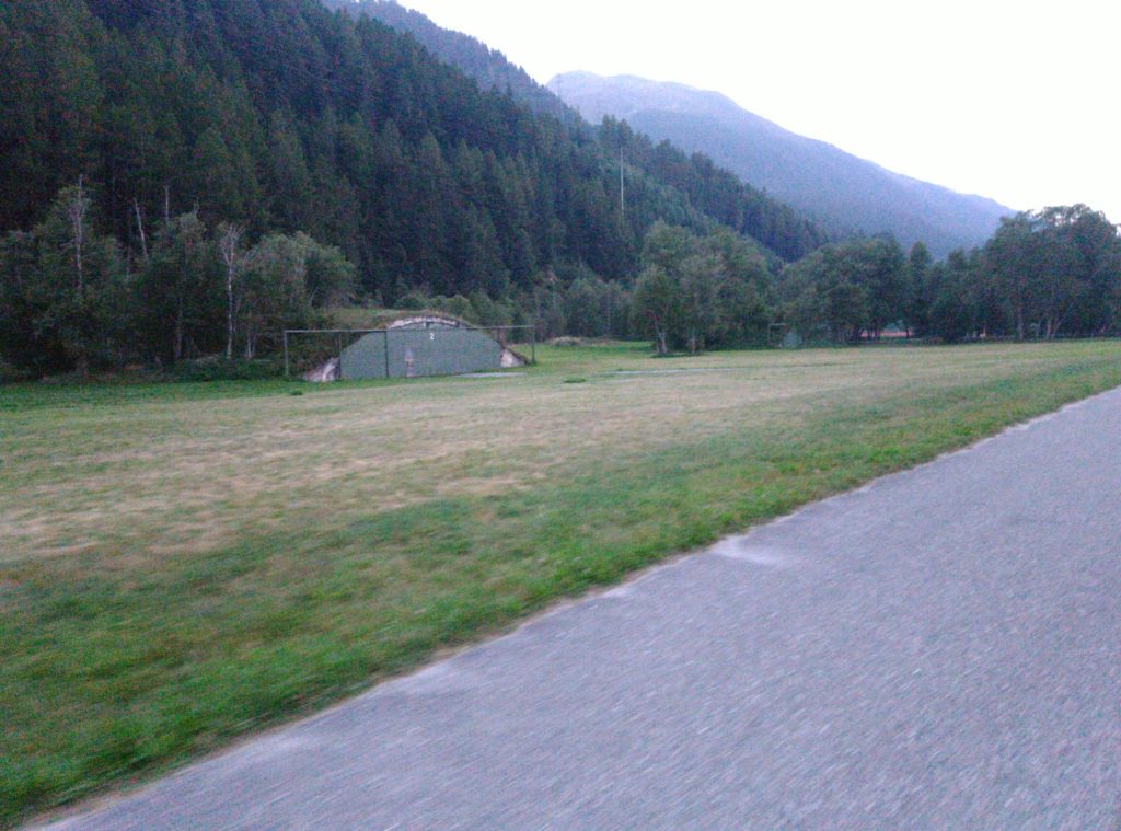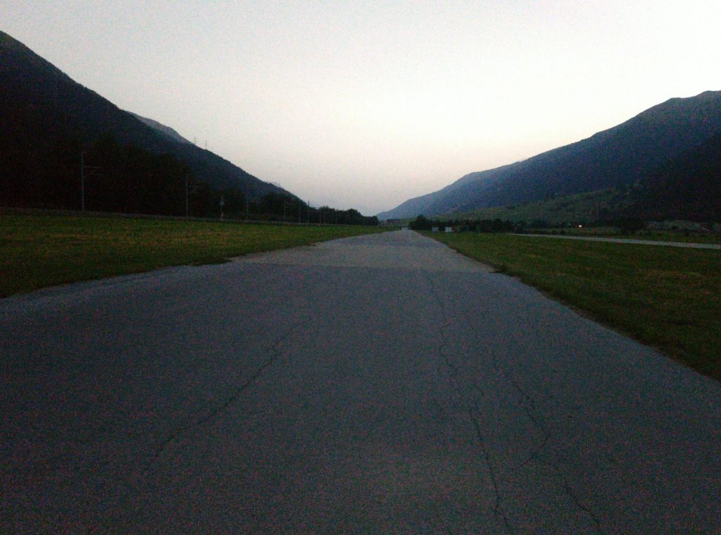 Die Rhône ist hier oben ein wilder Gebirgsfluss, der bis Brig durch die Schmelzwasser aus den Berner Alpen schnell anschwillt. Im Tal war es zu vorgerückter Abendstunde noch sehr warm. Ab und zu fuhr ich durch kalte Luftmassen, die von der Rhône aufstiegen. Eine 50 Kilometer lange Abfahrt bis nach Brig – gigantisch.