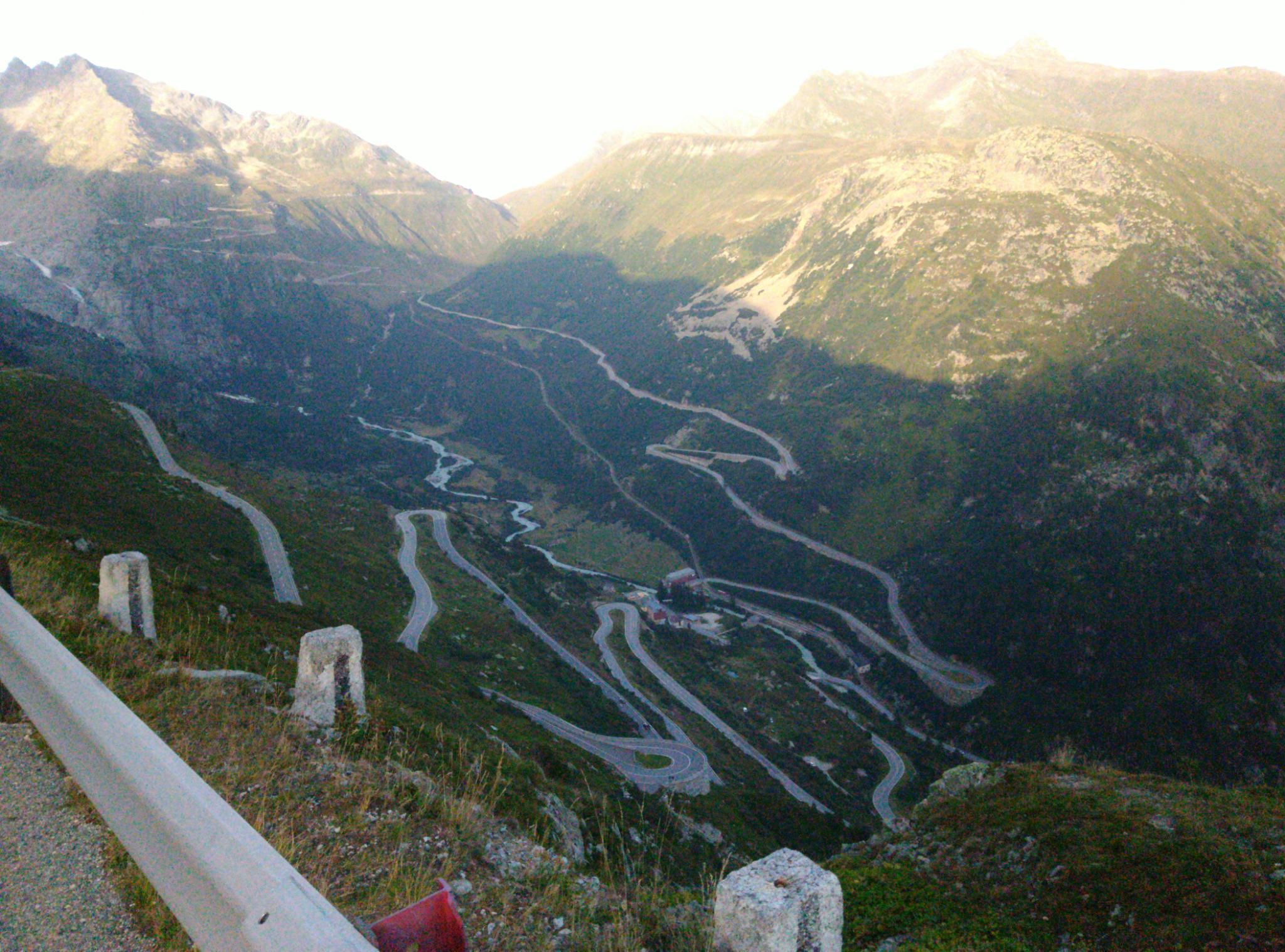 Mittwoch, 23. August. Der Grimselpass war anstrengend. Bis zum Beginn des Aufstiegs in Innertkirchen lag noch der Brünigpass (1.008 Meter) und davor ein fieser steiler 20-Prozent-Berg, der viel Kraft gekostet hat. Da hüpfte mir eine Gemse von einer fünf Meter hohen Felswand auf den Weg und dann weiter in den Abgrund. Vielleicht stammen von den Gemsen die Haufen auf den Passstraßen. Pferde habe ich nämlich weit und breit nicht gesehen. Und dafür waren die braunen „Äpfel“ auch zu klein.