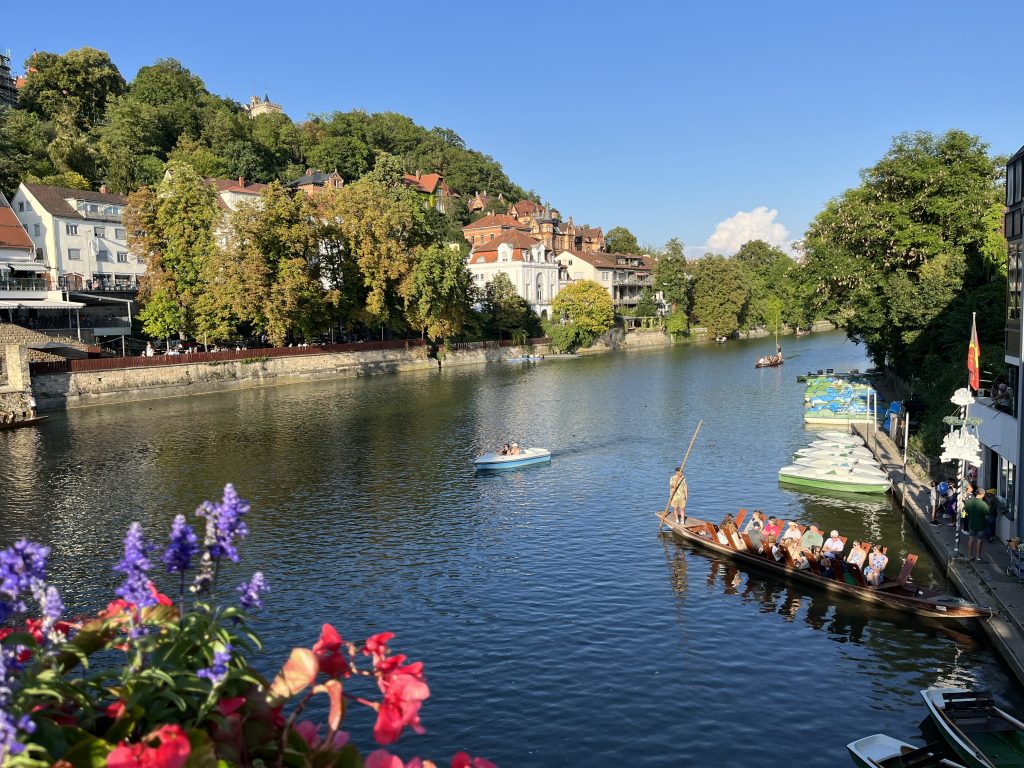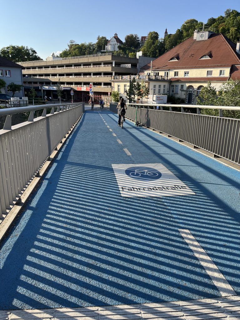 Bis die Terrassenpflanzen versorgt, das Navi synchronisiert und das Gepäck gewogen war, zeigte die Uhr schon dreivierteldrei. Deshalb habe ich von den 144 Kilometern nach Ravensburg Abstand genommen und mir ein Hotel in der Nähe von Tübingen gesucht. Ich wollte den Start nicht wieder verschieben, um den Absprung zu schaffen, aber ich wollte auch nicht im Dunkeln auf einsamen Landstraßen durch die Schwäbische Alb kurbeln, wo sich Hase und Igel gute Nacht sagen.