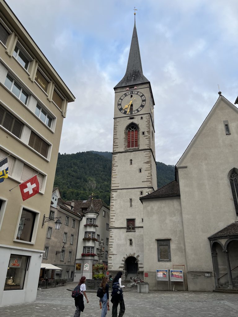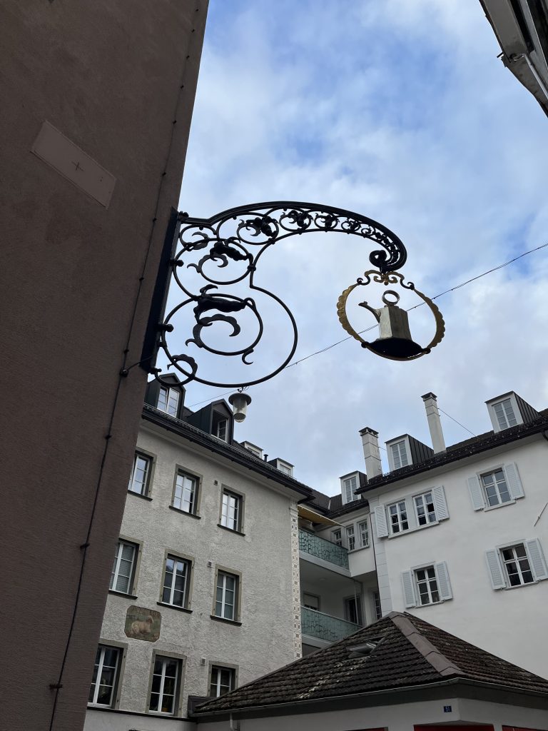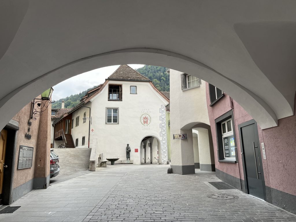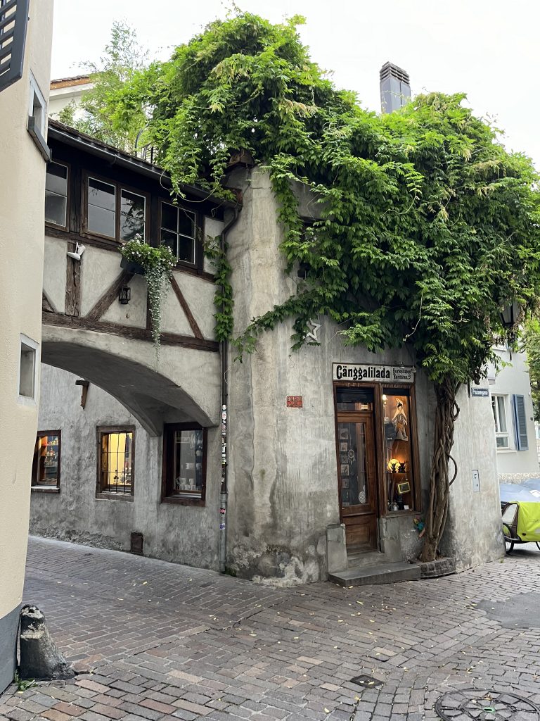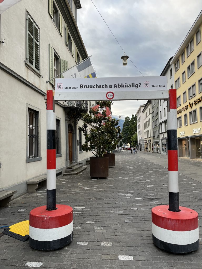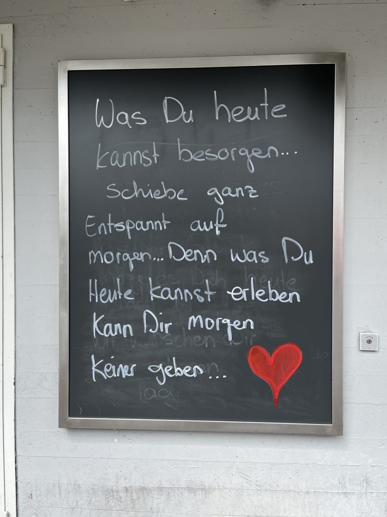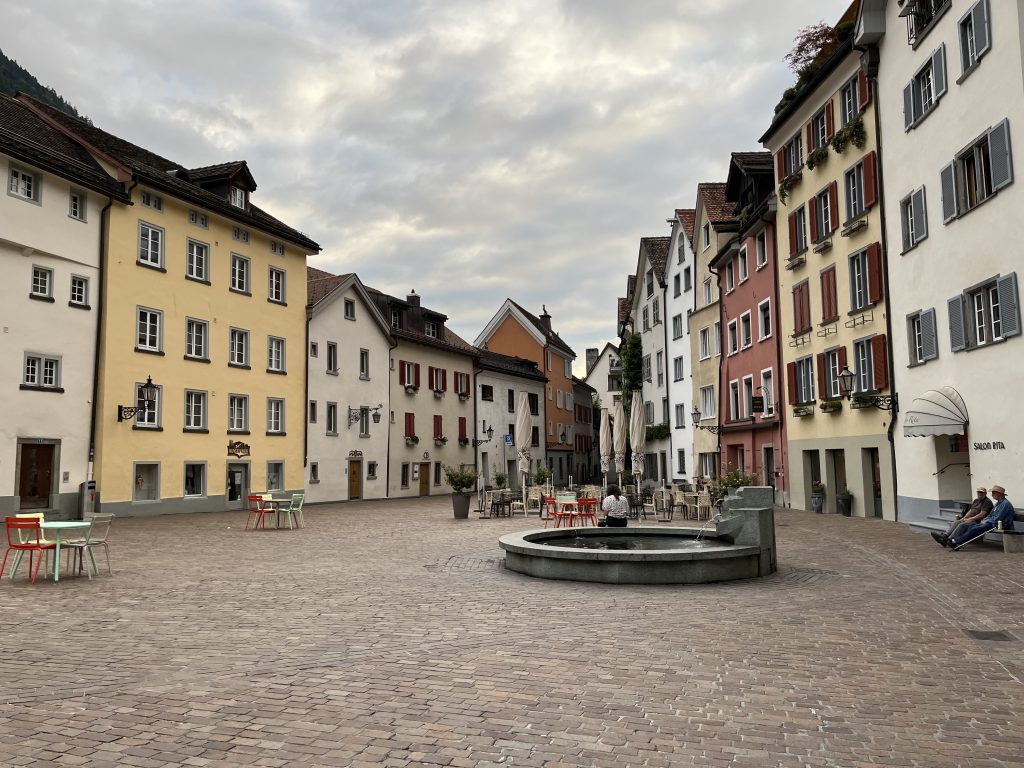 Die Stufen zum „Hotel zur Rebleuten“ bin ich hochgekrochen. Ich habe etwas Rücken und gehe eckig. Das kommt wohl von der einseitigen Belastung beim Radfahren. Vielleicht auch vom vielen Schlafen im Hotel in Ravensburg. Zur Entspannung der Rückenmuskulatur habe ich „den Hund“ probiert, eine Yoga-Figur. Morgen hab ich die Kletter-Etappe zum San-Bernardino-Pass. Da brauche ich den Rücken.